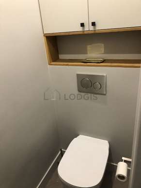 Este apartamento tiene una sala de baño magnífica y muy clara. Este baño tiene todo lo necesario para su bienestar diario : toallas, ropero, armario empotrado, ducha, secador de pelo, lavabo electrico, sink, sink, radiador seca-toallas. El WC está integrado en la sala del baño.