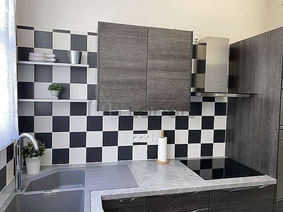 Este apartamento posee una cocinay todo el equipamiento necesario para su vida diaria : placas eléctricas, refrigerador, congelador, horno, micro ondas, horno micro-ondas, campana extractora, tostador, cafetera, mesa, estantería, armario, aparador, armario empotrado, vajilla, electrodomésticos, 1 silla(s), taburete, bar, airer, mixer, bin, ventilator.