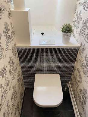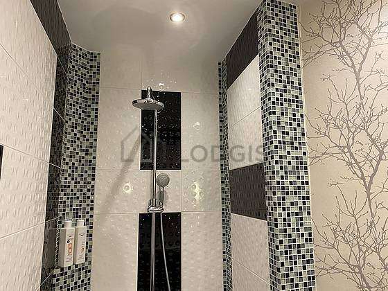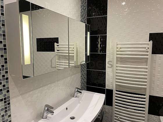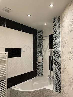 Este apartamento tiene una sala de baño magnífica. Este baño tiene todo lo necesario para su bienestar diario : toallas, armario empotrado, bañera, ducha, secador de pelo, airer, sink, towel rack, bin, radiador seca-toallas, carpet, ventilator. El WC está separado de la sala del baño y ubicado en un espacio independiente.