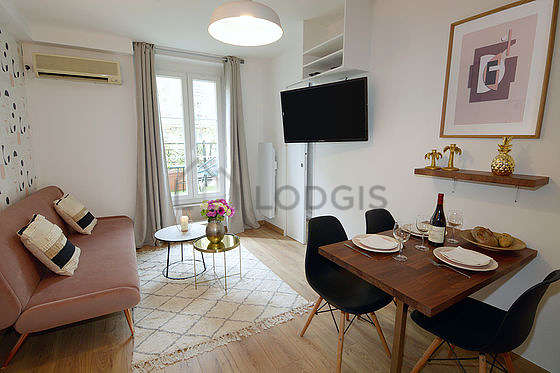 Este apartamento está formado por un salón con parquet en el suelo y ventanas, un balcon. Este salón está amueblado y equipado para que su estancia sea agradable : televisor, sábanas, edredones, sofá, mesa, armario, 1 silla(s)1 sofá cama.