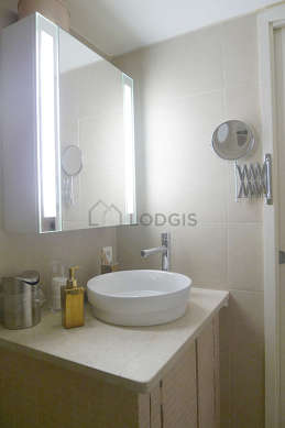 Este apartamento posee una bonito cocina con terrazo en el sueloy todo el equipamiento indispensable para su vida diaria : placas eléctricas, refrigerador, horno micro-ondas, congelador, campana extractora, tostador, hervidor, cafetera, armario empotrado, vajilla, taburete.