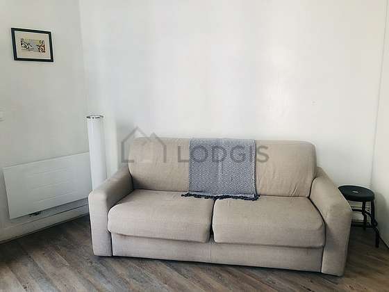 SalónEste apartamento está formado por un salón con parquet en el suelo una vista a la calle. Este salón tranquilo está amueblado y equipado para que su estancia sea agradable : televisor, sábanas, sofá, 1 sillones, mesa, mesa de estudio, ropero, armario, cómoda, armario empotrado, vajilla, 1 silla(s), airer, floor lamp, coat stand, vase1 sofá cama.