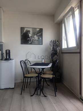 Este apartamento posee una bonito cocina con parquet en el sueloy todo el equipamiento esencial para su vida diaria : placas eléctricas, refrigerador, horno micro-ondas, congelador, mesa, ropero, vajilla, 1 silla(s).