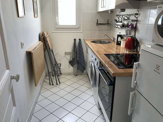 Este apartamento posee una magnífica cocina con azulejo en el sueloy todo el equipamiento indispensable para su vida diaria : placas eléctricas, refrigerador, congelador, horno, micro ondas, tostador, hervidor, mesa, estantería, armario empotrado, vajilla, 1 silla(s).