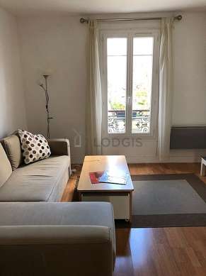 SalónEste apartamento está formado por un salón con parquet en el suelo y ventanas. Este salón muy tanquilo está amueblado y equipado para que su estancia sea agradable : televisor, sábanas, sofá, mesa, estantería, cómoda, armario empotrado.