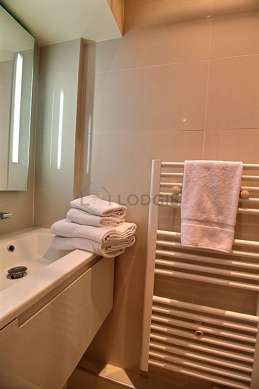 Este apartamento tiene una sala de baño magnífica. Este baño tiene todo lo necesario para su bienestar diario : armario empotrado, ducha, sink, radiador seca-toallas. El WC está separado de la sala del baño y ubicado en un espacio independiente.