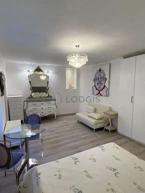 SalónEste apartamento está formado por un salón con parquet en el suelo y ventanas. Este salón está amueblado y equipado para que su estancia sea agradable : televisor, sábanas, edredones, sofá, mesa, mesa de estudio, armario, cómoda, armario empotrado, vajilla, 1 silla(s)1 cama.