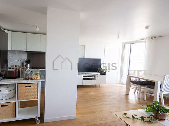 Este apartamento posee una magnífica cocina con parquet en el sueloy todo el equipamiento esencial para su vida diaria : placas eléctricas, refrigerador, horno, micro ondas, campana extractora, tostador, cafetera, ropero, armario empotrado, vajilla, bin.
