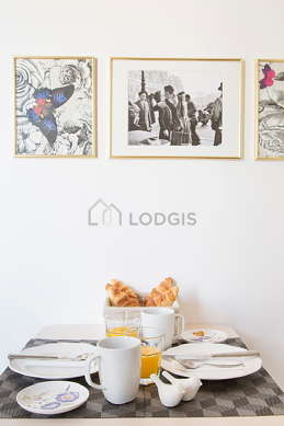 Este apartamento posee una magnífica cocina con terrazo en el sueloy todo el equipamiento necesario para su vida diaria : placas eléctricas, refrigerador, horno micro-ondas, congelador, tostador, estantería, armario empotrado, vajilla.