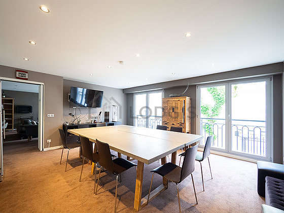 Con el fin de compartir vuestras comidas en un ambiente distendido durante su estancia en París, este apartamento posee un comedor gracias a televisor, mesa, aparador, vajilla, 8 silla(s).