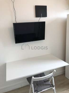 Este apartamento posee una bonito cocina con parquet en el sueloy todo el equipamiento esencial para su vida diaria : placas eléctricas, refrigerador, micro ondas, congelador, armario empotrado, vajilla.