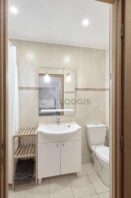 Este apartamento posee una magnífica cocina con parquet en el sueloy todo el equipamiento necesario para su vida diaria : placas eléctricas, refrigerador, horno, micro ondas, campana extractora, hervidor, estantería, armario empotrado, vajilla.