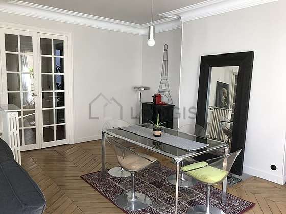 Con el fin de compartir vuestras comidas en un ambiente distendido durante su estancia parisina, este apartamento posee un agradable comedor que podrá reunir hasta 4 invitados gracias a mesa, aparador, 1 silla(s), entry way table, mirror, painting, carpet.