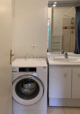 Este apartamento tiene una sala de baño. Este baño tiene todo lo necesario para su bienestar diario : armario empotrado, bañera, sink, radiador seca-toallas. El WC está separado de la sala del baño y ubicado en un espacio independiente.