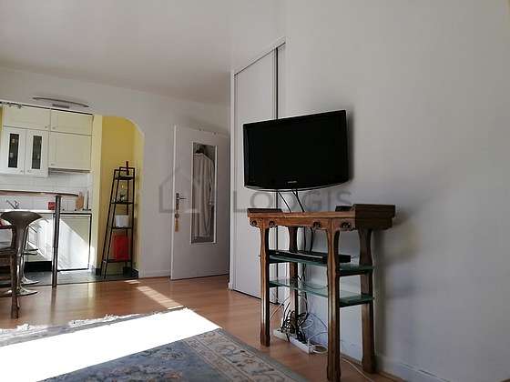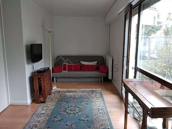 Este apartamento está formado por un salón con parquet en el suelo una vista a jardín. Este salón muy tanquilo está amueblado y equipado para que su estancia sea agradable : televisor, sábanas, edredones, sofá, ropero, armario empotrado1 sofá cama.