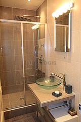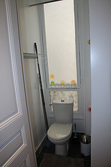 Este apartamento tiene una sala de baño. Este baño tiene todo lo necesario para su bienestar diario : toallas, estantería, ducha, secador de pelo, sink, radiador seca-toallas, carpet. El WC está separado de la sala del baño y ubicado en un espacio independiente.