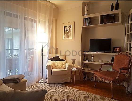 Este apartamento está formado por un salón con parquet en el suelo y ventanas. Este salón está amueblado y equipado para que su estancia sea agradable : televisor, sábanas, edredones, sofá, 1 sillones, mesa, mesa de estudio, ropero, biblioteca, estantería, armario empotrado, 1 silla(s)1 sofá cama.