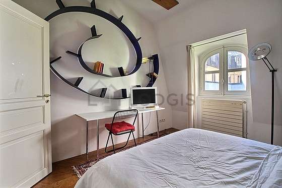 Con parquet en el suelo y ventanas esta habitación espléndida ofrece el equipamiento necesario para descansar durante su estancia : sábanas, edredones, mesa de estudio, estantería, 1 silla(s), painting, carpet1 cama.