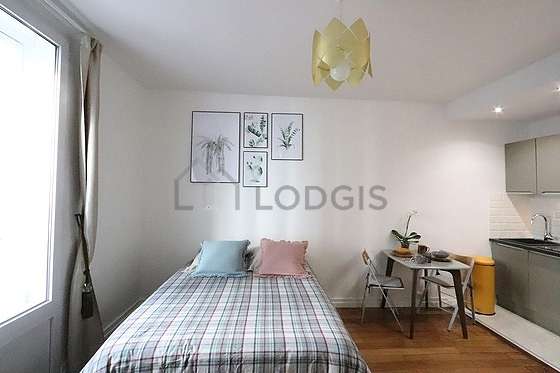 SalónEste apartamento está formado por un salón con parquet en el suelo. Este salón está amueblado y equipado para que su estancia sea agradable : televisor, sábanas, edredones, 1 sillones, mesa de estudio, ropero, armario empotrado, 1 silla(s), tv stand, mirror1 cama.