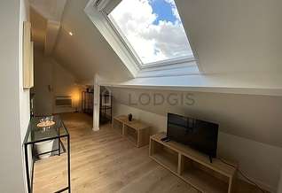 SalónEste apartamento está formado por un salón con parquet en el suelo y ventanas. Este salón muy tanquilo está amueblado y equipado para que su estancia sea agradable : televisor, edredones, sofá, mesa de estudio, armario, cómoda, vajilla1 sofá cama.
