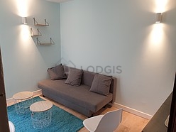 SalónEste apartamento está formado por un salón con parquet en el suelo y ventanas doble acristalamiento. Este salón muy tanquilo está amueblado y equipado para que su estancia sea agradable : televisor, sofá, mesita, mesa de estudio, 2 silla(s), carpet.