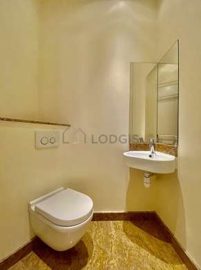 Este apartamento tiene una sala de baño magnífica y clara. Este baño tiene todo lo necesario para su bienestar diario : toallas, armario empotrado, ducha, sink, radiador seca-toallas. El WC está separado de la sala del baño y ubicado en un espacio independiente.