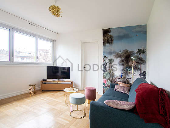 SalónEste apartamento está formado por un salón con parquet en el suelo y ventanas doble acristalamiento. Este salón muy tanquilo está amueblado y equipado para que su estancia sea agradable : televisor, mesita, floor lamp, tv stand1 sofá cama.