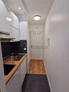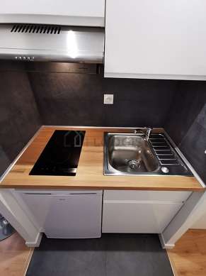 Este apartamento posee una magnífica cocina con azulejo en el sueloy todo el equipamiento esencial para su vida diaria : placas eléctricas, refrigerador, congelador, micro ondas, campana extractora, armario empotrado, vajilla, bin.