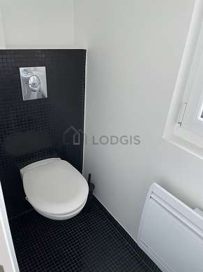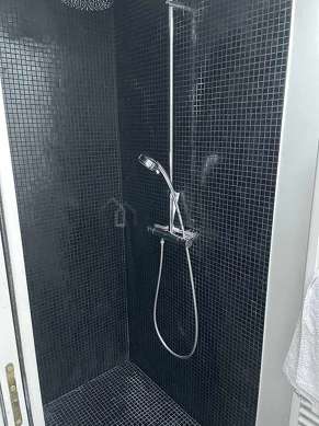Este apartamento tiene una sala de baño magnífica. Este baño tiene todo lo necesario para su bienestar diario : toallas, armario, cómoda, ducha, sink, sink, radiador seca-toallas. El WC está integrado en la sala del baño.