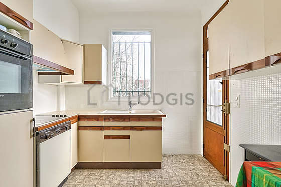 Esta casa posee una bonito cocina con azulejo en el sueloy todo el equipamiento indispensable para su vida diaria : placas eléctricas, refrigerador, congelador, horno, micro ondas, campana extractora, tostador, mesa, estantería, armario, armario empotrado, vajilla.