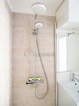 Este apartamento tiene una sala de baño magnífica. Este baño tiene todo lo necesario para su bienestar diario : toallas, estantería, armario empotrado, ducha, ducha hydromasage, airer, sink, mirror, towel rack. El WC está separado de la sala del baño y ubicado en un espacio independiente.