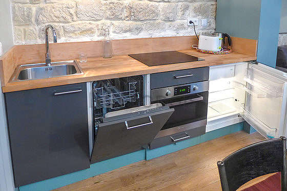 Este apartamento posee una magnífica cocina con parquet en el sueloy todo el equipamiento indispensable para su vida diaria : refrigerador, horno, micro ondas, tostador, cómoda, armario empotrado, vajilla.