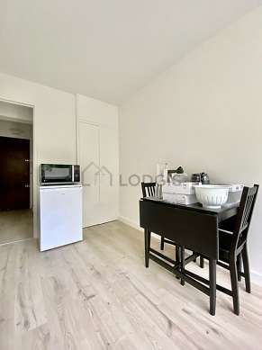 Este apartamento posee una cocinay todo el equipamiento esencial para su vida diaria : placas eléctricas, refrigerador, micro ondas, vajilla.