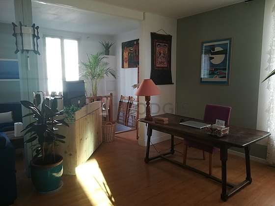 Esta casa está formada por un salón con parquet en el suelo y ventanas doble acristalamiento. Este salón muy tanquilo está amueblado y equipado para que su estancia sea agradable : televisor, sofá, 1 sillones, mesa de estudio, estantería, aparador, chimenea, 1 silla(s), floor lamp, tv stand.
