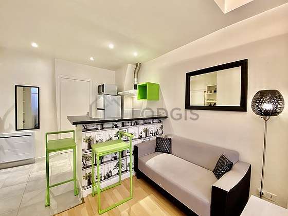 SalónEste apartamento está formado por un salón con azulejo en el suelo y ventanas y una vista a la calle. Este salón está amueblado y equipado para que su estancia sea agradable : televisor.