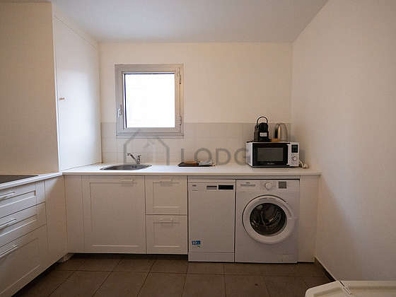 Este apartamento posee una magnífica cocina con azulejo en el sueloy todo el equipamiento necesario para su vida diaria : placas eléctricas, refrigerador, congelador, horno micro-ondas, hervidor, cafetera, armario empotrado, vajilla.