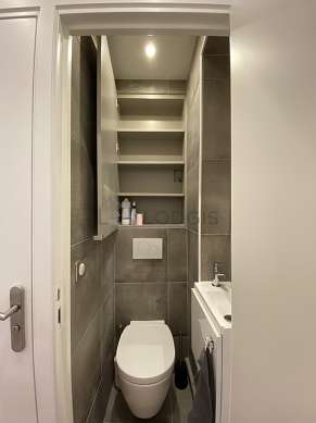 Este apartamento tiene una sala de baño magnífica y clara with ventanas doble acristalamiento. Este baño tiene todo lo necesario para su bienestar diario : toallas, ducha, secador de pelo, sink, mirror, towel rack, bin, radiador seca-toallas, ventilator. El WC está separado de la sala del baño y ubicado en un espacio independiente.