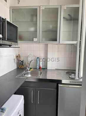 Este apartamento posee una magnífica cocina con azulejo en el sueloy todo el equipamiento indispensable para su vida diaria : placas eléctricas, refrigerador, micro ondas, armario, vajilla.