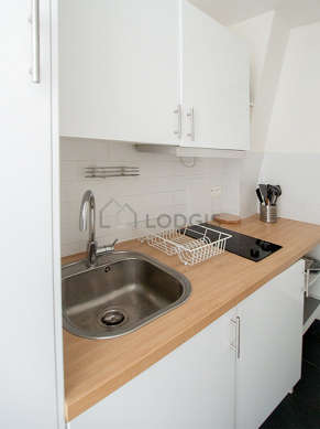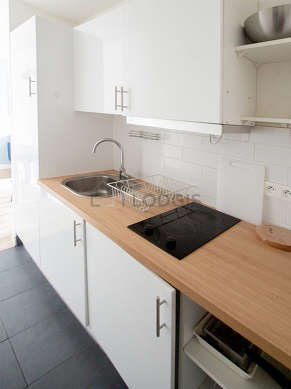 Este apartamento posee una magnífica cocina con azulejo en el sueloy todo el equipamiento indispensable para su vida diaria : placas eléctricas, refrigerador, congelador, micro ondas, campana extractora, estantería, armario empotrado, vajilla.