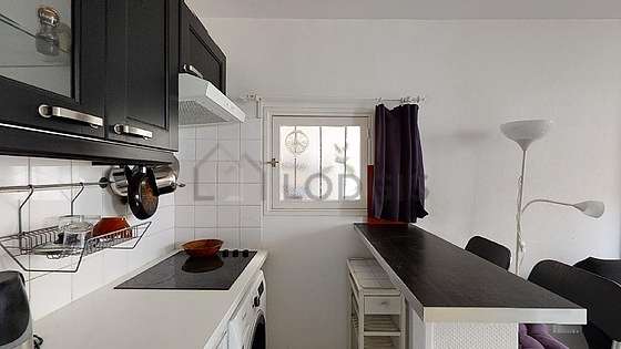 Este apartamento posee una bonito cocinay todo el equipamiento indispensable para su vida diaria : placas eléctricas, refrigerador, micro ondas, congelador, campana extractora, tostador, hervidor, mesa, armario empotrado, vajilla, 1 silla(s), bar.