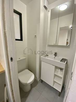 Este apartamento tiene una sala de baño magnífica y muy clara. Este baño tiene todo lo necesario para su bienestar diario : armario empotrado, ducha, sink, mirror. El WC está integrado en la sala del baño.