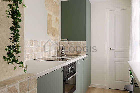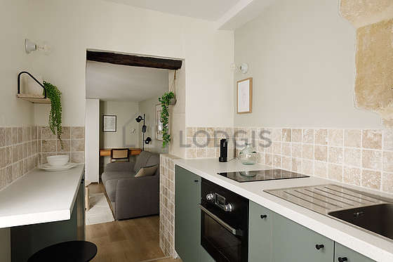 Este apartamento posee una cocinay todo el equipamiento indispensable para su vida diaria : placas eléctricas, refrigerador, congelador, horno micro-ondas, hervidor, cafetera, mesa, vajilla, taburete.