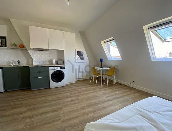 Este apartamento posee una magnífica cocina con parquet en el sueloy todo el equipamiento necesario para su vida diaria : placas eléctricas, refrigerador, congelador, micro ondas, campana extractora, tostador, hervidor, armario empotrado, vajilla, painting.