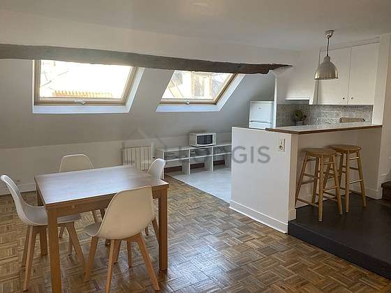 Con el fin de compartir vuestras comidas en un ambiente distendido durante su estancia parisina, este apartamento posee un comedor gracias a mesa, 1 silla(s), taburete.