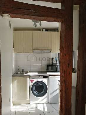 Este apartamento posee una magnífica cocina con azulejo en el sueloy todo el equipamiento necesario para su vida diaria : placas eléctricas, refrigerador, micro ondas, congelador, campana extractora, hervidor, armario empotrado, vajilla.