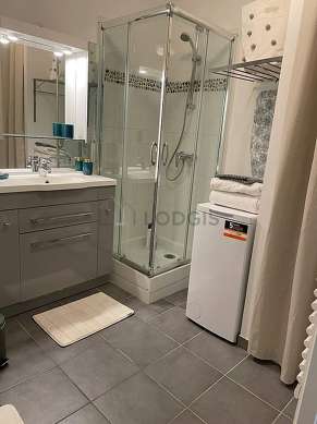 Este apartamento posee una magnífica cocina con parquet en el sueloy todo el equipamiento esencial para su vida diaria : placas eléctricas, refrigerador, horno, micro ondas, congelador, campana extractora, cafetera, estantería, armario empotrado, vajilla.