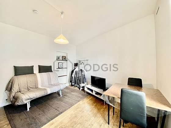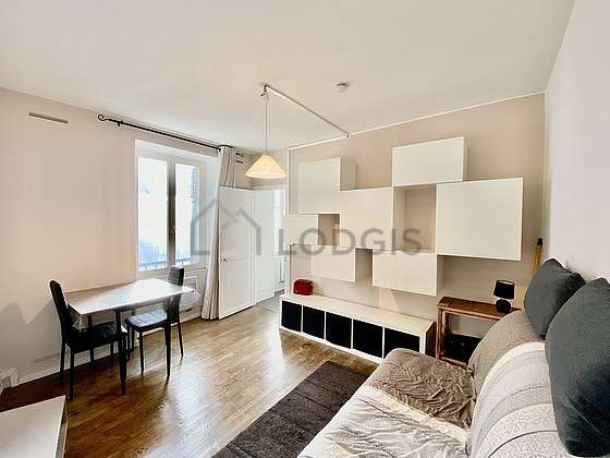 SalónEste apartamento está formado por un salón con parquet en el suelo y ventanas doble acristalamiento. Este salón muy tanquilo está amueblado y equipado para que su estancia sea agradable : televisor, sábanas, edredones, mesa, estantería, 1 silla(s), mesita de noche, coat stand, carpet1 sofá cama.