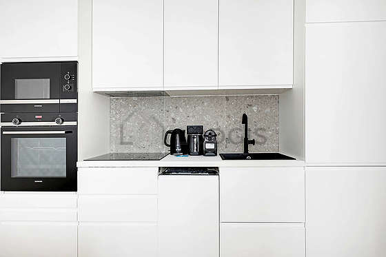Este apartamento posee una magnífica cocinay todo el equipamiento indispensable para su vida diaria : placas eléctricas, refrigerador, congelador, horno, micro ondas, campana extractora, tostador, hervidor, cafetera.
