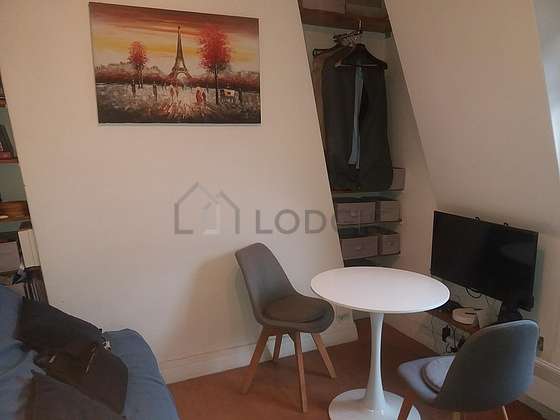 SalónEste apartamento está formado por un salón con parquet en el suelo y ventanas doble acristalamiento. Este salón tranquilo está amueblado y equipado para que su estancia sea agradable : televisor, edredones, refrigerador, sofá, mesa, ropero, estantería, vajilla, 3 silla(s), coat stand1 sofá cama.