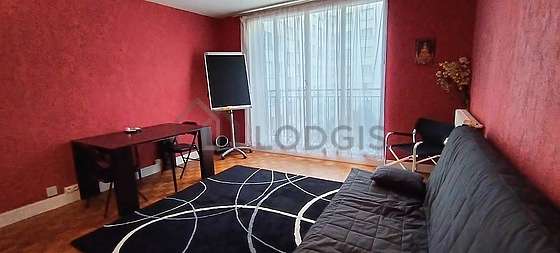 SalónEste apartamento está formado por un salón con parquet en el suelo y ventanas. Este salón muy tanquilo está amueblado y equipado para que su estancia sea agradable : televisor, mesa, 1 silla(s)1 sofá cama.